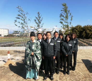 さて、本日、大川市三丸分譲5号地にて地鎮祭を行いました。