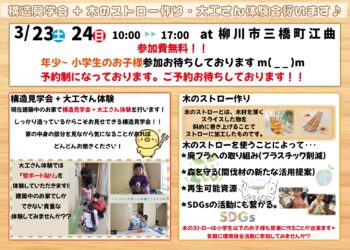 ただ構造を見ていただくだけだと、子供さんが退屈かもしれないので、「木のストロー作り、大工さん体験」を同時開催します。