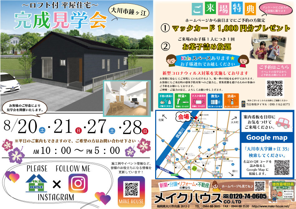 終了 10月1.2.8.9.10日に完成見学会を開催します!!