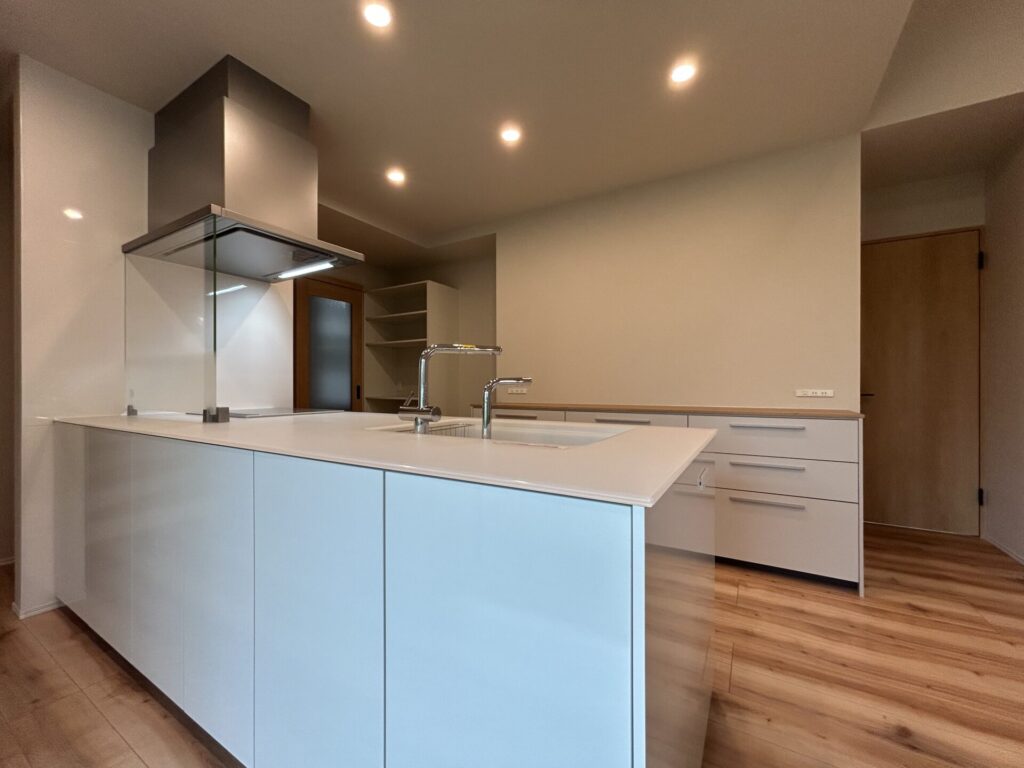 キッチンメーカーショールームで一目惚れされたTOTOのザ・クラッソを採用。透明感のある美しいクリスタルカウンターで毎日の料理が楽しくなります。