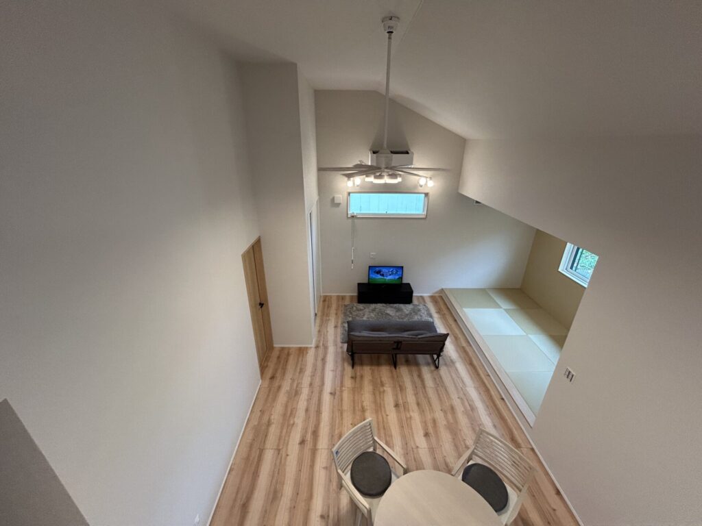 ロフトからはリビングが一望でき、お子様の遊び心をくすぐります。熱効率と落下防止を考え、内窓を設置しています。