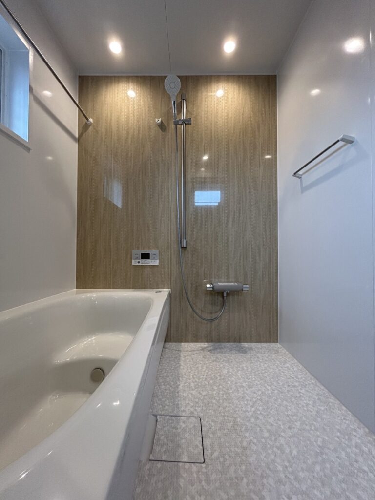 浴室快適で気持ちよく過ごせる空間にこだわったTOTOのサザナを採用。断熱性はもちろん、自然とリラックスできる「ゆるリラ浴槽」、足触りの良い「ほっカラリ床」など快適に過ごせる工夫が盛りだくさん。